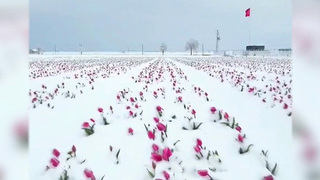 Мороз -15, апрельский рекорд за 30 лет. Погибает урожай фруктов. Цветочный ковер стал белым. А на дорогах гололед. Десятки аварий.